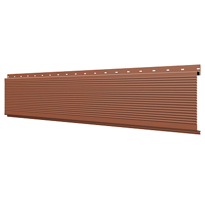 Линеарная потолочно-стеновая панель РИФЛЕНАЯ усиленная цвет RAL8004 Терракотовый применяется в качестве софитов для подшивы крыши, наружной и внутренней отделки потолков, стен, фронтонов фасада дома в Новосибирске.