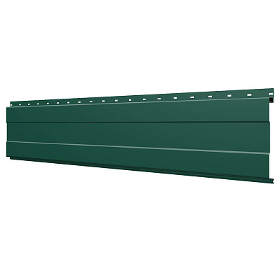 Линеарная потолочно-стеновая панель с ПОЛОСОЙ усиленная цвет RAL6005 Зеленый Мох применяется в качестве софитов для подшивы крыши, наружной и внутренней отделки потолков, стен, фронтонов фасада дома в Новосибирске.