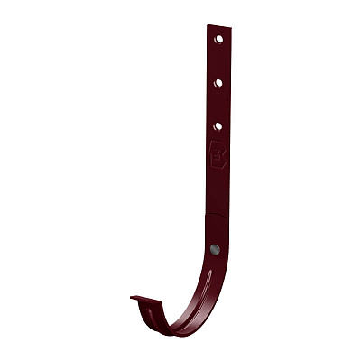 Держатель желоба водостока d125х280мм RAL P363 Вишня металлический усиленный - для фиксации желобов на кровле, обеспечивает крепление желоба к подконструкции кровли крыши, устанавливается на стропила под кровельное покрытие в процессе монтажа. Держатель желоба изготовлен из однородной стали толщиной 3 мм, что обеспечивает максимальную надежность крепления.