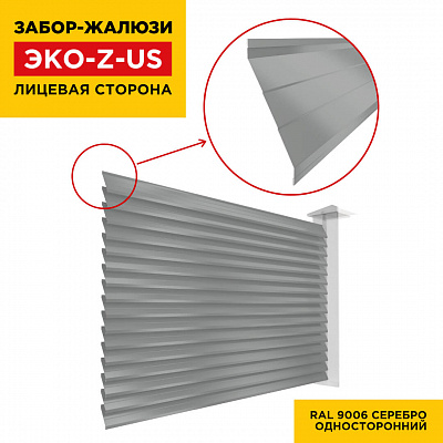 Ламель металлическая Z-образная усиленная ЭКО-Z-US, цвет RAL 9006 Серебро, длина любая кратно 1см под заказ - для забора-жалюзи, беседки, перголы в Новосибирске.